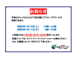 【ウエーブアリーナ追加予約受付のお知らせ】