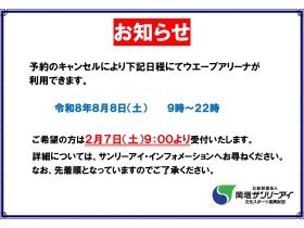 【ウエーブアリーナ追加予約受付のお知らせ】