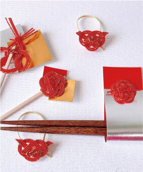 水引の結びで迎春を華やかに。お正月の食卓を飾る箸置きとピックを作ってみましょう♪